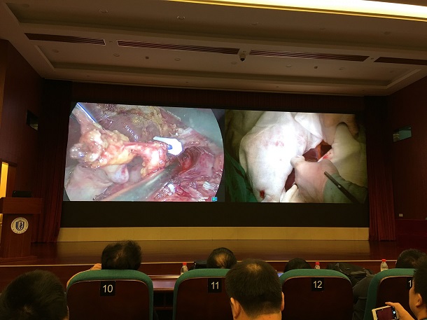 11日下午,大會安排了數(shù)場手術(shù)視頻演示及分享技術(shù)交流,其中腹腔鏡肝切除VII、VIII段切除術(shù)及腹腔鏡左、右半肝切除術(shù)等其他手術(shù)演示視頻中多次用到我公司產(chǎn)品速豐?。