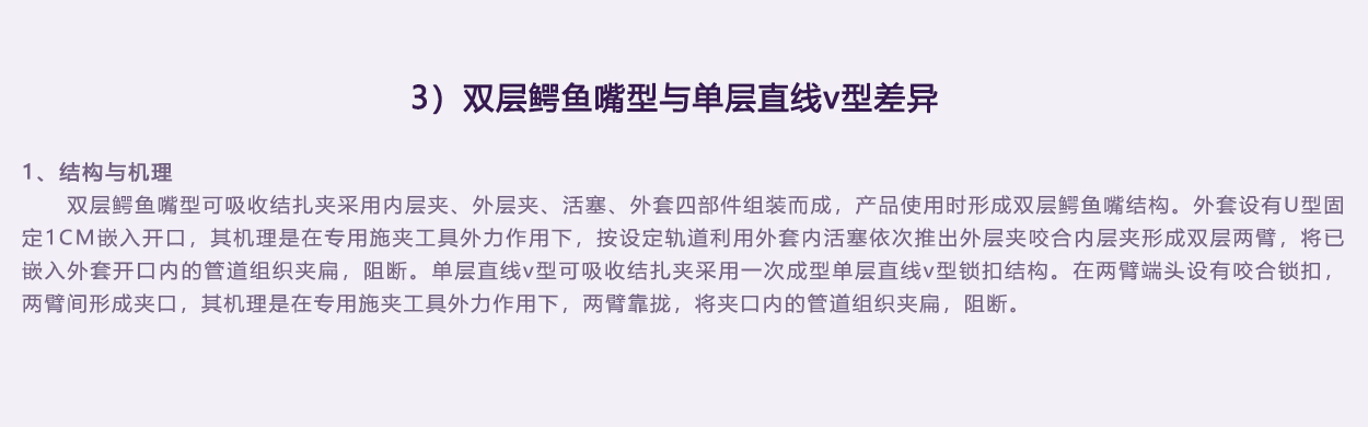 內(nèi)外層夾為雙色設(shè)計(jì),涇渭分明。實(shí)際使用中內(nèi)外層夾配合夾閉管腔效果一目了然,避免錯誤判斷。